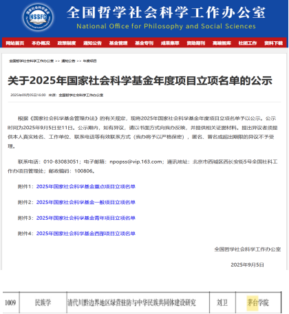 The National Office for Philosophy and Social Sciences has recently released the list of approved annual projects under The National Social Science Fund of China (NSSFC) for 2025. Among them, the project "Research on the Green Standard Army Garrison in the Sichuan-Guizhou Border Region and the Construction of the Chinese National Community during the Qing Dynasty", led by Dr. LIU Wei from the School of Marxism, has been granted funding under the Youth Project category.
