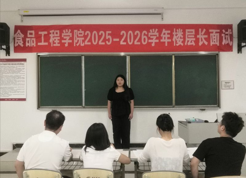 为进一步加强学生宿舍管理,营造文明有序、积极向上的寝室文化氛围,助力学院“一站式” 学生社区建设,近期,食品工程学院在报国楼顺利举办了2025-2026学年楼层长面试选拔活动,众多同学踊跃参与,展现出高度的热情与责任感。学院党总支副书记钟舒、各年级辅导员出席活动。