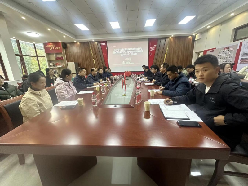 活动分为会议交流与党建业务融合交流两大阶段。在会议交流环节,双方分别介绍参会人员,明确对接联络与交流主体。随后,喻仕瑞详细介绍了茅台学院通识教育学院的办学定位、师资构成、体育教育课程体系及党建工作开展情况,展现了学院在通识体育教学与党建引领业务方面的探索成果。遵义医科大学体育学院党委副书记、院长汪伟则围绕学院学科特色、运动康复专业优势、体育竞赛教研成果等内容展开分享,凸显其在专业体育教育与运动健康领域的深厚积淀。