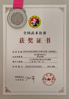 2025年7月18日-20日,由国家体育总局武术运动管理中心、中国武术协会、贵州省体育局主办的2025年全国太极拳公开赛(贵州赛区)在贵州省贵阳市举行,共有106支代表队、1000多人参赛,我校代表队经过努力拼搏,取得了较为优异的成绩。