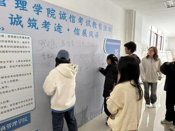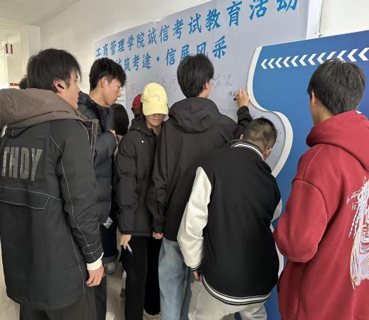 榜样引领明方向,诚信立誓守初心。诚信活动现场设置主题签字墙,同学们以签名为诺,将诚信考试的理念内化于心、外化于行。一笔一画间,不仅是对考风考纪的庄严承诺,更彰显了工商学子坚守诚信的良好风貌,为学院筑牢诚信考试防线奠定坚实基础。