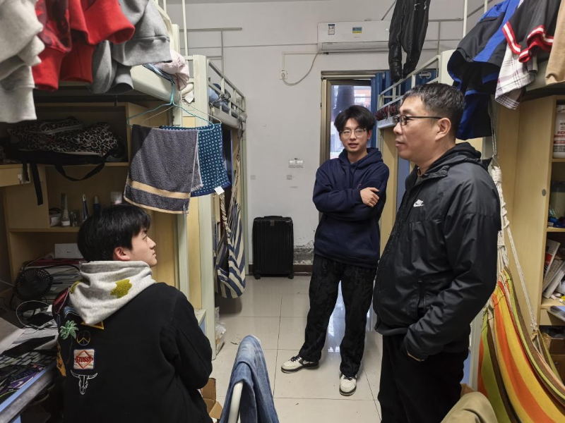 走访过程中,校领导与学生们亲切交流,关心学生假期去向,及时回应学生需求,强调宿舍安全规定,切实为同学们纾困解难。