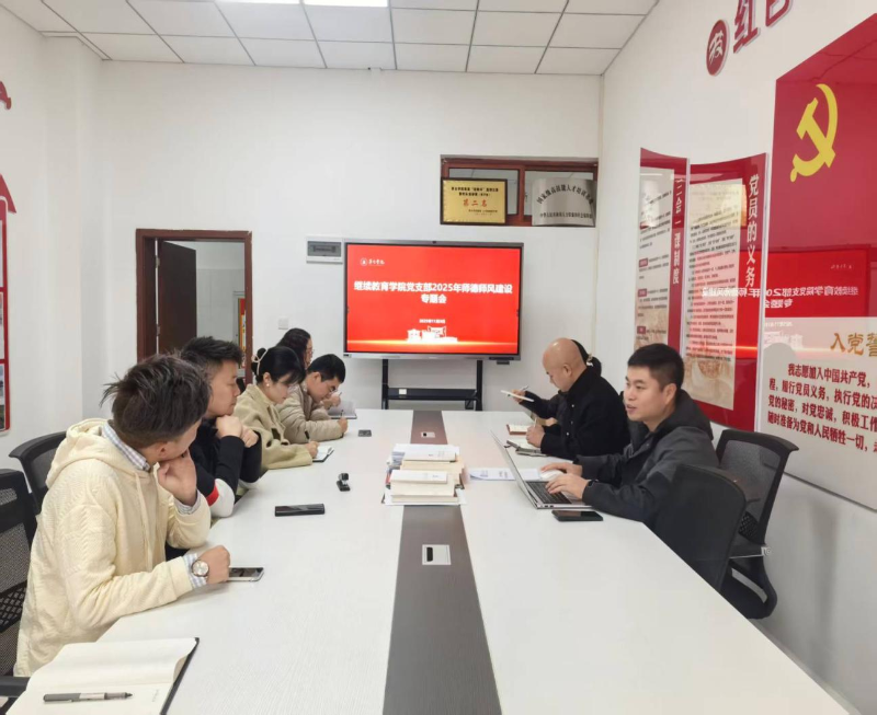 11月3日上午,根据学校工作要求,继续教育学院党支部在党员活动室召开师德师风建设专题会,会议由支部书记王维华同志主持,继续教育学院全体教职工参加。