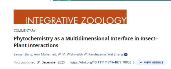 近日,酿酒工程学院副教授、博士蒋泽元在国际一区Top期刊《Integrative Zoology》发表题为“Phytochemistry as a Multidimensional Interface inInsect–Plant Interactions”的研究成果。该研究获国家自然科学基金(32472644、32160666)、茅台学院高层次人才科研启动基金(mygccrc[2022]015)等项目资助。