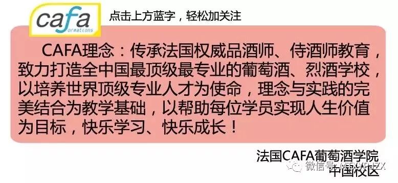 法国CAFA葡萄酒学院(CAFA-FORMATIONS)成立于1986年 ,是一所研究葡萄酒及酒精饮料专业品鉴的国际学校,也是目前法国波尔多地区唯一的一所专业侍酒师学院。学院从事专业葡萄酒教育30余年,自CAFA建校以来足迹遍布全球,在保加利亚,俄罗斯,墨西哥,波多黎各,美国等均设有分校区,积累了丰富的教学经验,师资力量强大;并且每年都会邀请法国顶级酒庄合作参与教学工作,酒庄主与学生分享葡萄园经营,CAFA葡萄酒学院入驻亚洲十余年,见证了韩国、日本、印度等国葡萄酒行业发展历程,为亚洲培养了一大批具有专业素养的优秀人才。2009年7月,法国CAFA学院进入中国,在北京设立分校,并同时设立办事处开展专业侍酒师及品酒师培训等工作。法国CAFA葡萄酒学院中国校区采用法国总校原版教学体系,并结合中国葡萄酒市场行业特点,科学编排教学内容,为中国学员提供纯正的法国葡萄酒教育以及最前沿的中国葡萄酒行业资讯。