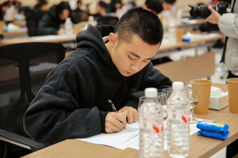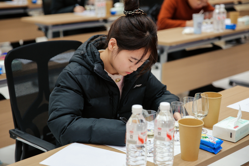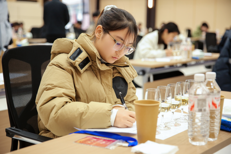 本次大赛考核标准严苛、维度全面,既对选手的葡萄酒专业理论储备进行系统检验,更重点考察外观识别、香气辨析、口感品鉴、综合质量评估等感官分析实战能力,多轮高难度的盲品考核,对选手的专业素养、临场应变与心理素质均提出极高要求。比赛中,茅台学院学子严格遵循专业品鉴步骤,细致观察酒液特质,敏锐捕捉各类香气变化,精准剖析酒体结构,准确判断酒款品种与产区特征并完成逻辑严密的专业品酒笔记,展现出扎实的专业功底和良好的赛场风貌。