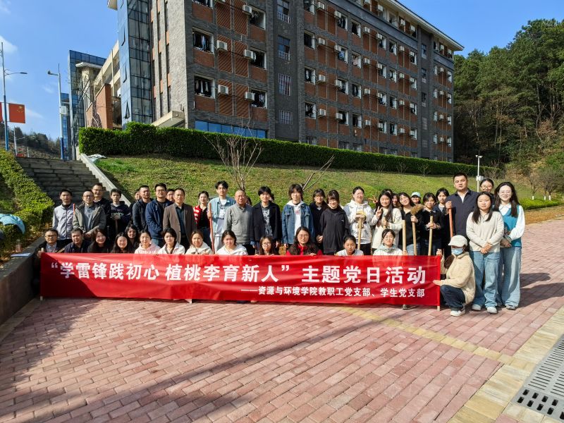为厚植生态文明理念,践行雷锋精神,增强师生党员同志的服务奉献意识,2026年3月12日下午,资源与环境学院教职工党支部、学生党支部在学校劳动基地联合开展“学雷锋践初心 植桃李育新人”主题党日活动,师生党员们以实际行动为校园增添一抹新绿。
