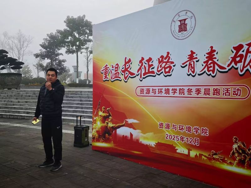 为赓续红色血脉、弘扬长征精神,让永不褪色的信仰之旗高高飘扬在新时代青年的心中,让“每一代人都要走好自己的长征路”的号召化作脚下最铿锵的步伐,2025年12月18日清晨,资源与环境学院举办“重温长征路·青春砺初心”冬季晨跑活动,让师生以奔跑的姿态致敬先辈,用汗水浇灌信仰。学校党委学生工作部副部长刘秋,学院领导黄训星、王贤晨、刘晓晓、栾康,全体辅导员、班主任及2024级、2025级学生参加。