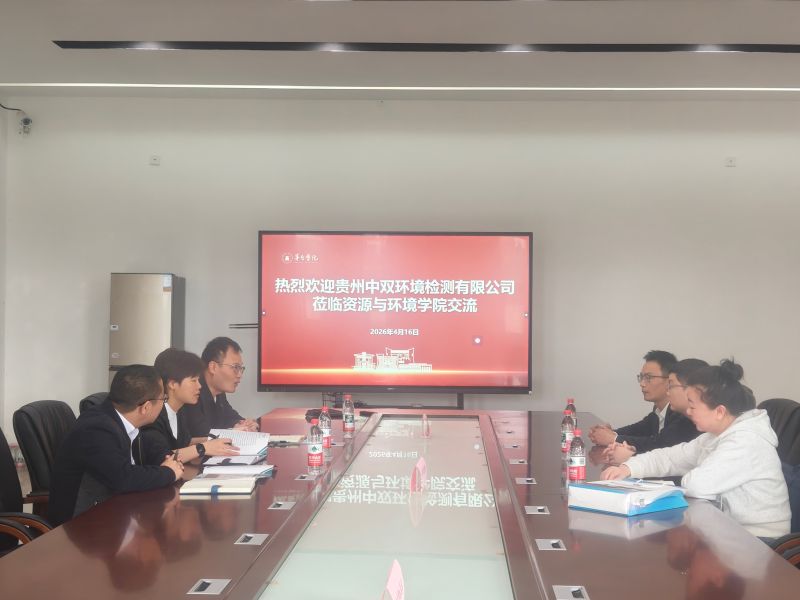 2026年4月17日下午,贵州中双环境检测有限公司应邀到访资源与环境学院。学院党总支副书记刘晓晓、副院长高宇、学生工作室主办栾康等相关负责人与企业代表围绕产教融合、就业渠道拓展以及实习实践基地建设等方面进行了深入交流。双方一致认为,加强校企合作是提升应用型人才培养质量、促进学生高质量就业的重要途径。未来,双方也将在实习基地共建、课程内容对接、岗位精准推介等方面进一步深化合作。