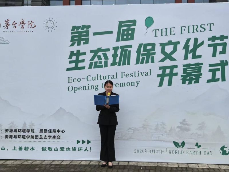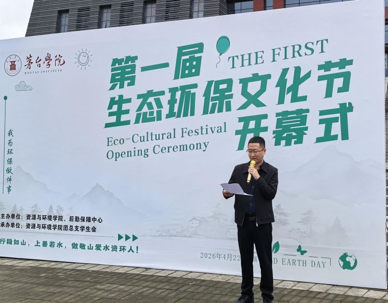 活动伊始,于灏洋校长为文化节致开幕词。他指出,茅台学院扎根赤水河畔,既是绿水青山的守护者,更是绿色未来的建设者。他勉励全体资环学子立足专业所学,积极投身绿色实践,以青春之力守护生态家园,用实际行动诠释新时代青年的环保担当。随后,于灏洋校长郑重宣布:资源与环境学院第一届生态环保文化节正式开幕。
