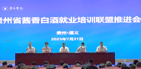 7月31日,贵州省酱香白酒就业培训联盟推进会在茅台学院召开。遵义市人民政府党组成员、副市长李红林出席会议并讲话,省人力资源和社会保障厅职业能力建设处处长万远茂主持会议,遵义市委组织部副部长、市人力资源社会保障局局长张雪梅出席会议并安排部署酱酒就业培训联盟工作,仁怀市副市长罗小松出席会议并讲话。联盟首批83家成员单位相关负责人参会。