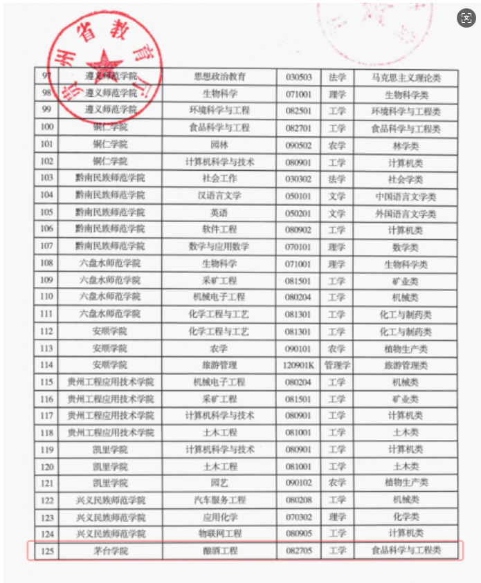 近日,贵州省教育厅正式公布了《关于遴选认定贵州省普通本科高校“金专”建设点的通知》,茅台学院酿酒工程专业凭借其鲜明的办学特色、较好的人才培养质量以及对贵州省重大发展战略的精准服务,成功入选贵州省“金专”建设点。这是我校专业建设取得的又一重大标志性成果,充分体现了省委省政府、省教育厅对我校办学实力和专业建设水平的高度认可。