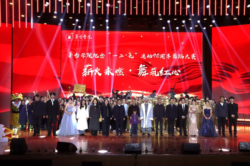 12月9日,“薪火永燃・舞筑红心” 茅台学院纪念“一二・九”运动90周年舞蹈大赛在大礼堂举行。纪念活动以舞蹈为媒回望峥嵘岁月,赓续红色血脉,展现当代大学生的青春风采与爱国情怀。校领导李贤富、于灏洋、张春林、田戊戌、周长辉、张珊出席纪念活动。大赛特邀茅台文体中心舞蹈演员郭家阔、叶奇鑫、肖志雄和马克思主义学院党支部书记、副院长李莎莎担任评委。