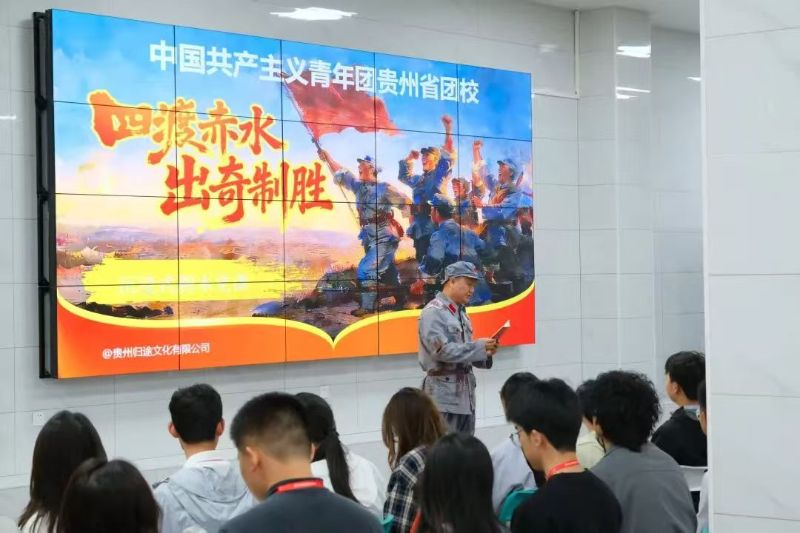 本次培训为期五天,采取集中授课、现场教学、典型分享、互动研讨相结合的模式。课程聚焦深入学习《习近平新时代中国特色社会主义思想概论》,通过与马克思“面对面”深刻领悟《共产党宣言》的精髓,系统学习习近平总书记关于青年工作的重要论述,探讨学联学生会及团学骨干队伍建设的路径,研读《习近平与大学生朋友们》。第十二期大学生骨干培训班的学员通过沉浸式剧本演绎,亲身体验四渡赤水战役,感悟红军坚定的信念与卓越的战略智慧;前往长征文化数字艺术馆,观看沉浸式教学剧目《红飘带·伟大征程》,借助数字技术生动还原长征峥嵘历程,使学员直观感受革命先辈的信仰与牺牲,深化红色文化认知,传承长征精神,进一步筑牢青年骨干的理想信念与责任担当;此外,学员们还深入参访了阳明文化园,在古色古香的建筑与静谧的庭院中,亲身感受王阳明先生的生活足迹与历史氛围。他们通过专题讲解、经典诵读与互动研讨,系统修习阳明心学的核心精义,从“心即理”到“致良知”,逐步领会其中深邃的哲学内涵。在沉浸式的体验中,学员们深刻体悟 “知行合一”的实践智慧,认识到真知必能行、真行方为知的道理,将内在的认知与外部的行动紧密融合。