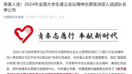 我校“传承红志·筑梦黔行志愿宣讲团”成功入选2024年全国大学生遵义会议精神志愿宣讲团!