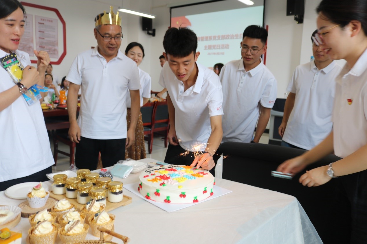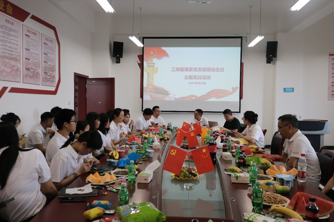 6月28日下午,茅台学院工商管理系全体党员在党员活动室汇聚一堂,座谈交流,集体过“政治生日”。