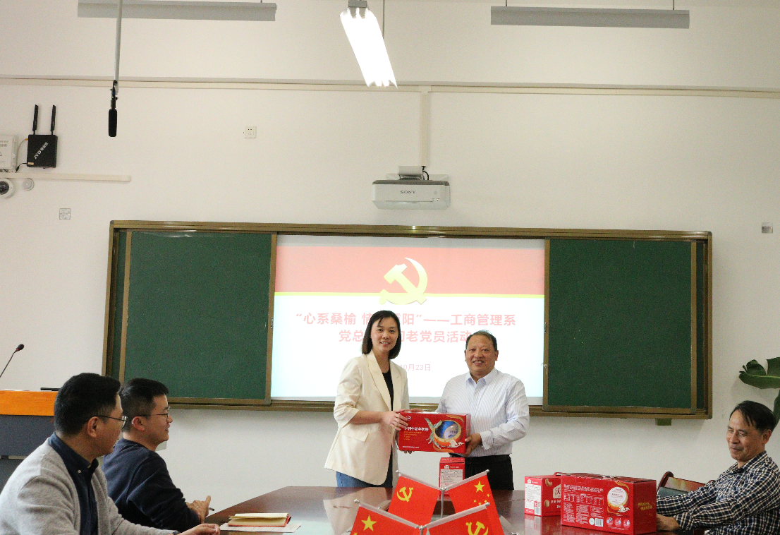党总支书记童俊向两位老党员致以节日的问候,同时送上党总支准备的慰问品,并祝愿两位教授节日快乐、健康长寿。