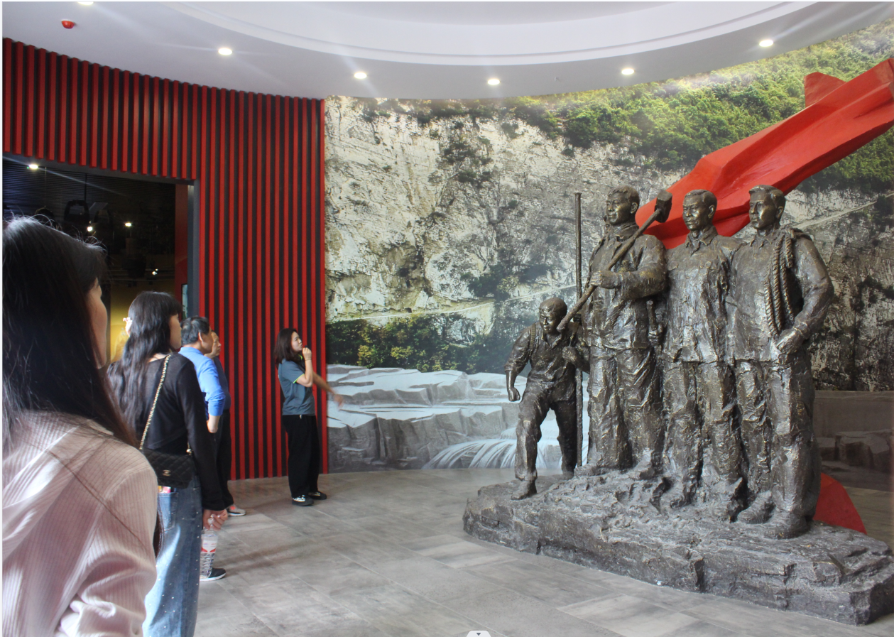 在参观大发渠党性教育陈列馆时,老师们详细了解黄大发老支书带领团结村修渠的事迹,学习老支书勇挑重担、不惧困难,“敢叫日月换新天”的意志品质,并在党旗下重温入党誓词,砥砺前进初心。