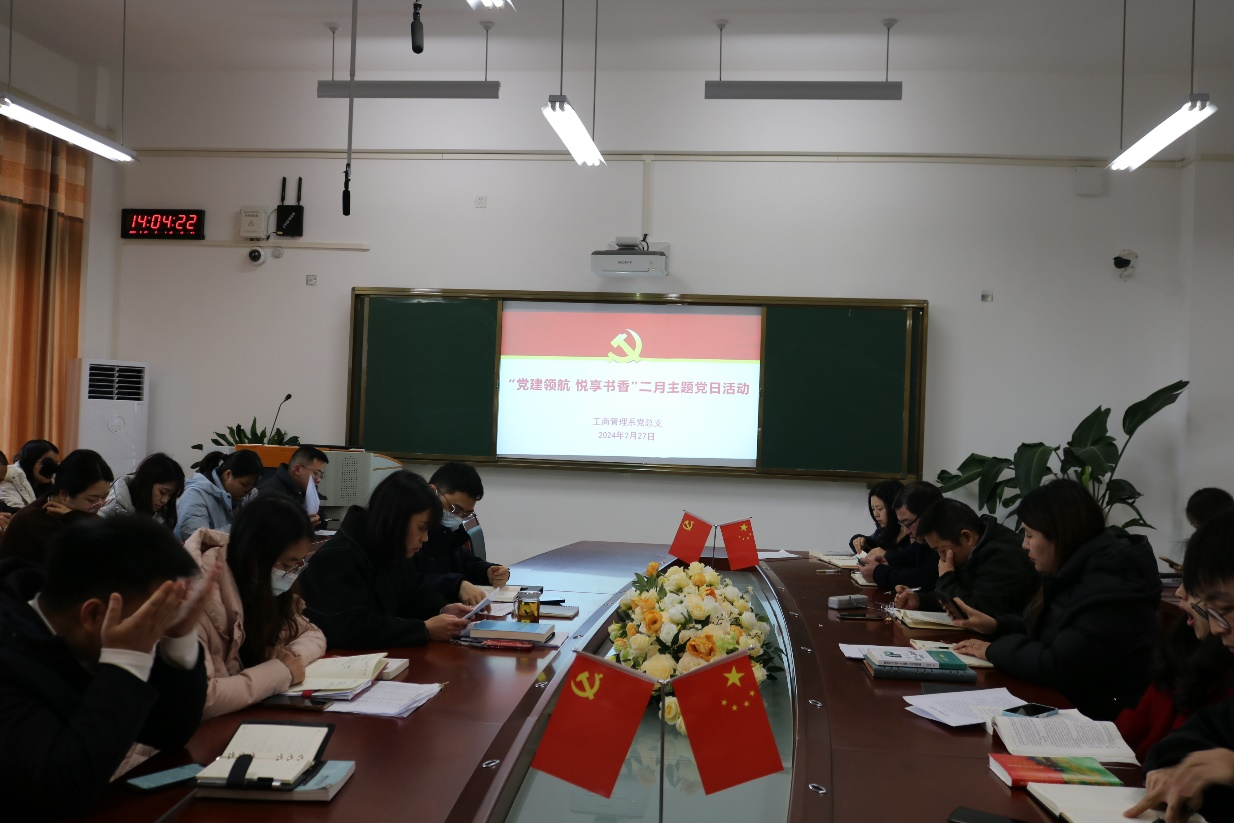 为深入学习贯彻党的二十大精神和习近平总书记“多提倡读书,建书香社会”等重要指示精神,激发广大党员读书热情,营造“多读书、读好书、善读书”的良好氛围,建设学习型总支部。2月27日,工商管理系党总支在留芳楼四楼会议室开展“党建领航 悦享书香”主题党日活动,全体教职工党员和学生党员代表参加。