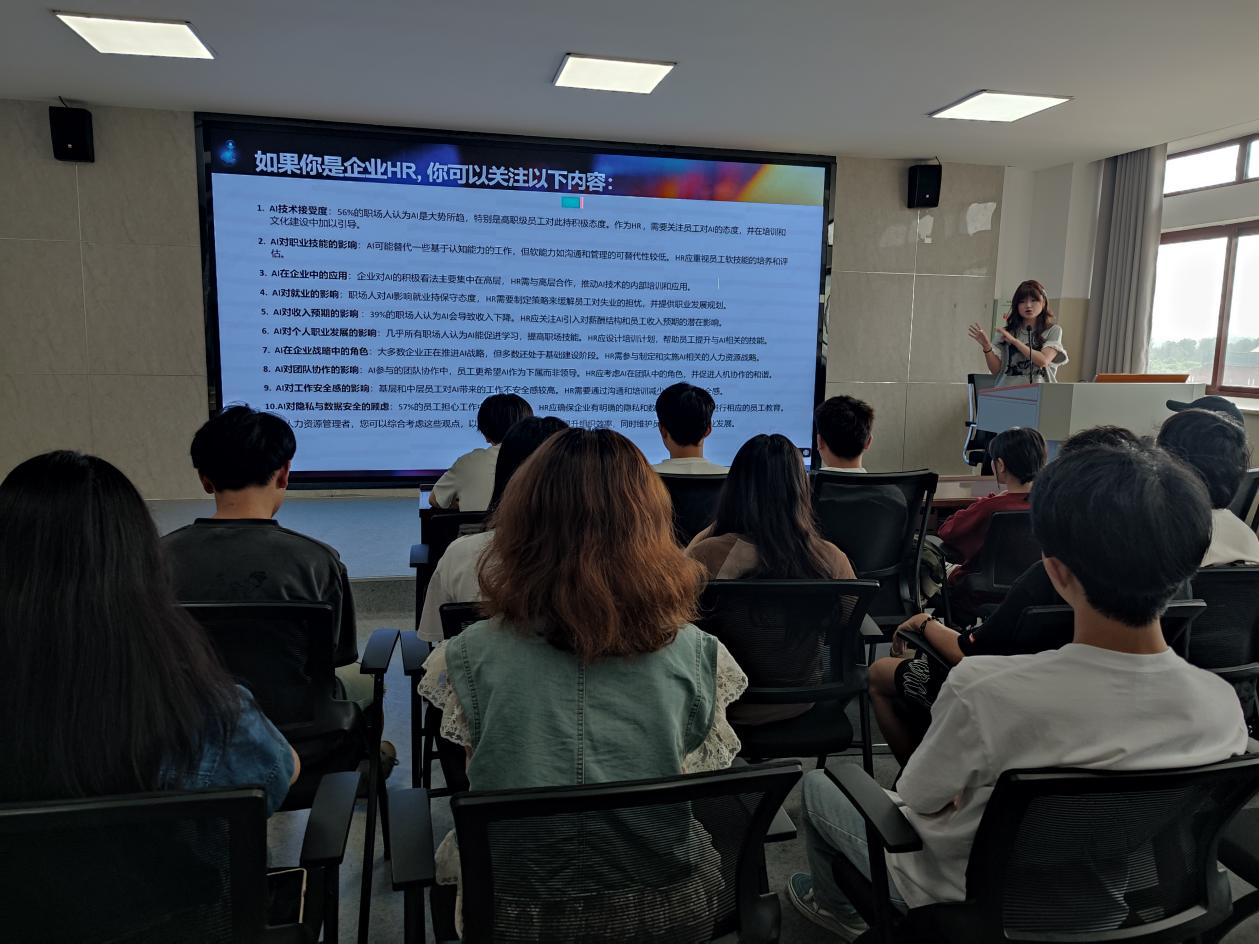 为进一步加深系部师生对人工智能与职场方面的认识,促进其在该领域研究方面的成果产出,5月22日,工商管理系刘文副教授在明德楼516会议室开展了题为“人工智能与职场—数智新职场与企业高质量发展”的工商论坛。