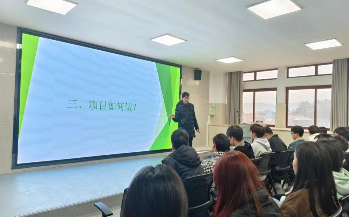 孙宗帝博士首先结合《贵州打造全国重要白酒生产基地》课题申报书的写作开始讲解,向学生们讲述如何写一份课题申报书,包括选题依据、研究内容、思路方法、创新之处、预期成果、参考文献等方面,强调每一个方面都需要认真分析,用心琢磨如何去写。他以项目结题报告展开讲述,介绍了贵州白酒生产基地、产业效率、企业价值等基本概念,基地效率与企业价值关系的机理分析,贵州白酒生产基地发展现状等。