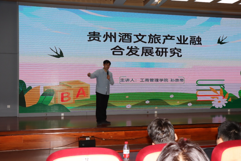4月28日,由茅台学院科研处主办,工商管理学院承办的第十九期“酿理青年说”学术讲座于图书馆一楼报告厅顺利举行。工商管理学院副教授孙宗帝博士受邀为全校师生开展了主题为“贵州酒文旅产业融合发展研究”的学术讲座,此次讲座由工商管理学院科研秘书黄丹主持,工商管理学院师生代表参加讲座。