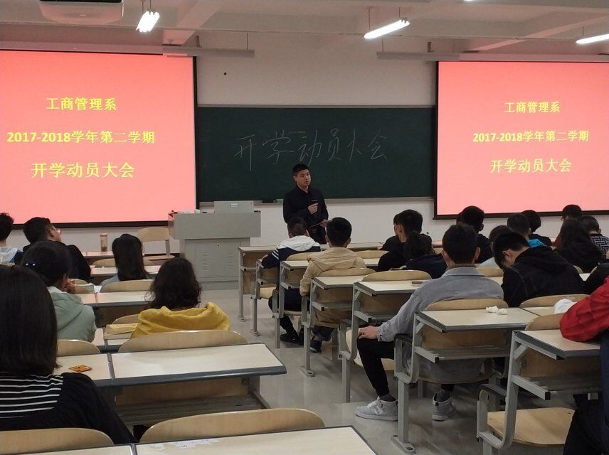 三月,是春暖花开的日子;三月,是我们告别寒冬,迎接新春的日子;三月,也是我们让经过寒冬,迎接新春的日子。在这特殊的日子里,工商管理系的同学们也从假期的休闲中转换到紧张的学习状态上来。同学的脸庞仿佛被寒冬的刻刀勾画了一笔一样,越发成熟。重新相聚的同学们充满活力,在一片欢歌笑语互相谈论自己假期遇到的趣事。接着,系迎来第二学期开学动员大会。