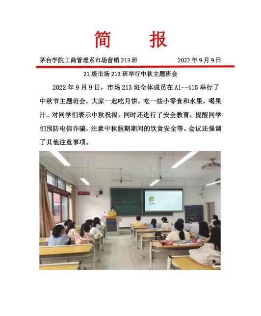 本次活动由工商管理系团总支学生会为各个班级统一采购月饼、饮料等物资,并于2022年9月10日之前,将月饼与饮料发放给各个班级。随后,由各个班级自主开展“铭记历史,寄情中秋”主题班会,由工商管理系团总支学生会统一收集所有班级的活动简报,并对该活动进行总结。