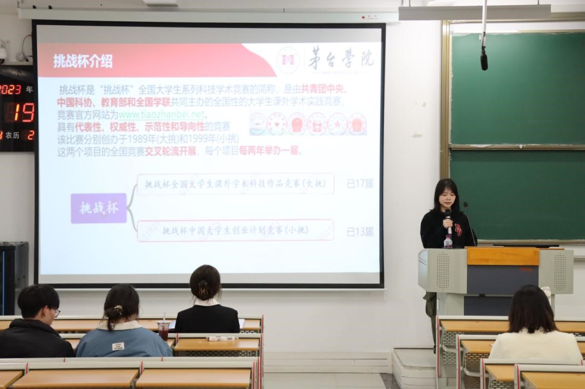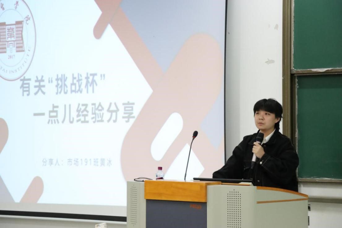 胡雨婷同学详细地给同学们介绍了“挑战杯”这一竞赛的规定与要求,希望各位学弟学妹们能够抓住机会,积极参加创新创业类的赛事,并且从中有所收获。