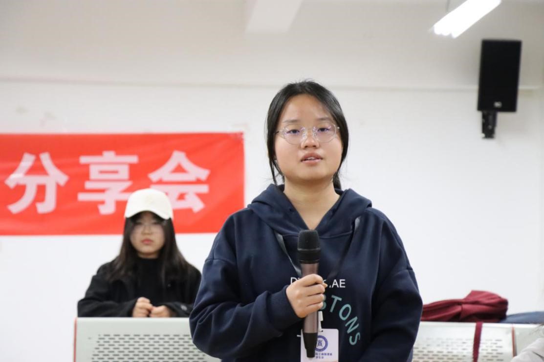 王佳同学分别从项目介绍、团队介绍、赛事分享和注意事项这四个部分,给同学们分享了她参加“挑战杯”竞赛时的所感所想与经验。