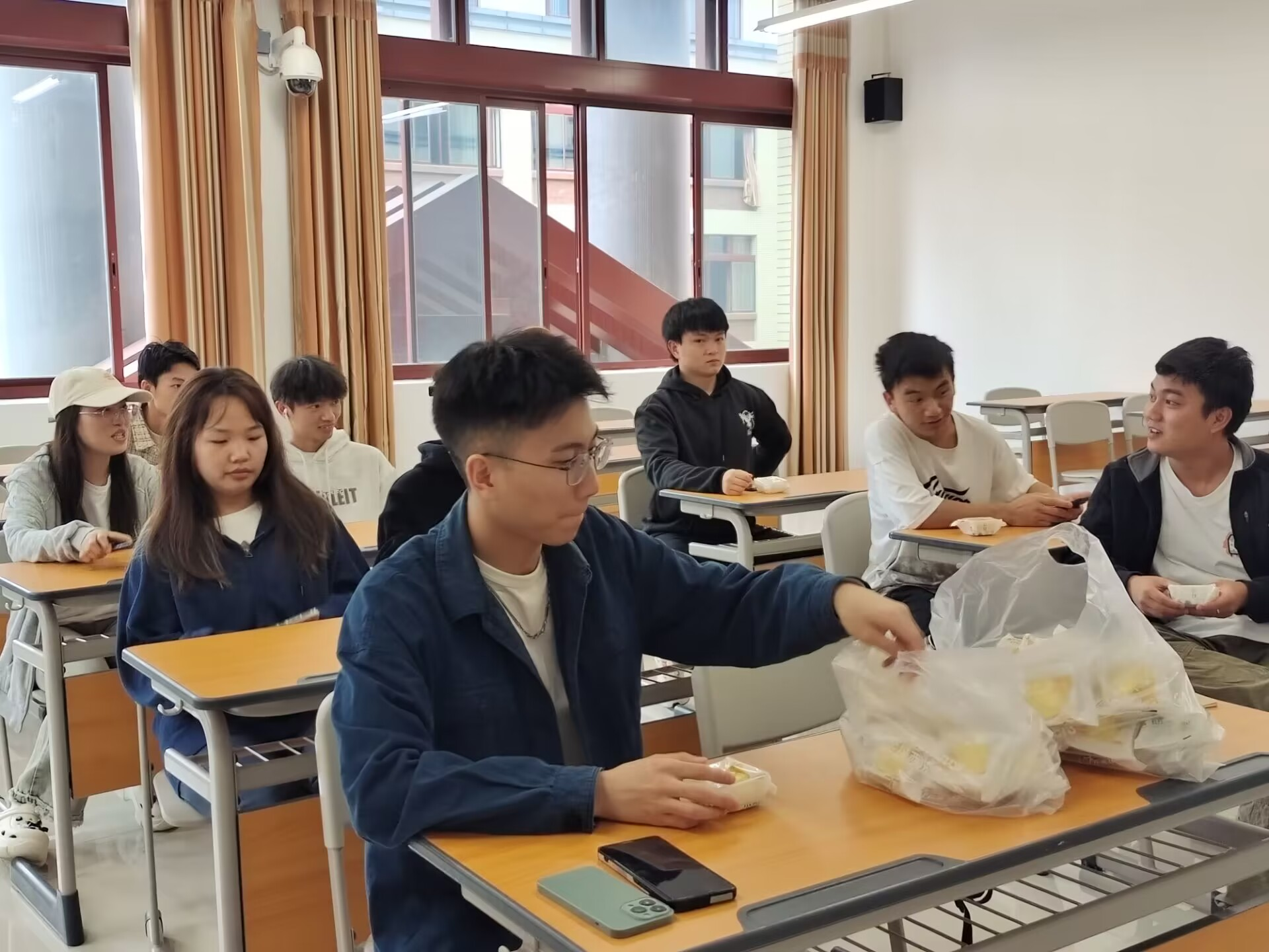本次活动,各个班级派代表来系部领取月饼,并分发给班级同学。在班级统一分发月饼后,同学们脸上都洋溢着幸福的笑容。有的班集体,为营造家的氛围,以寝室为单位给同学分享月饼。大家其乐融融,共迎即将到来的中秋佳节。