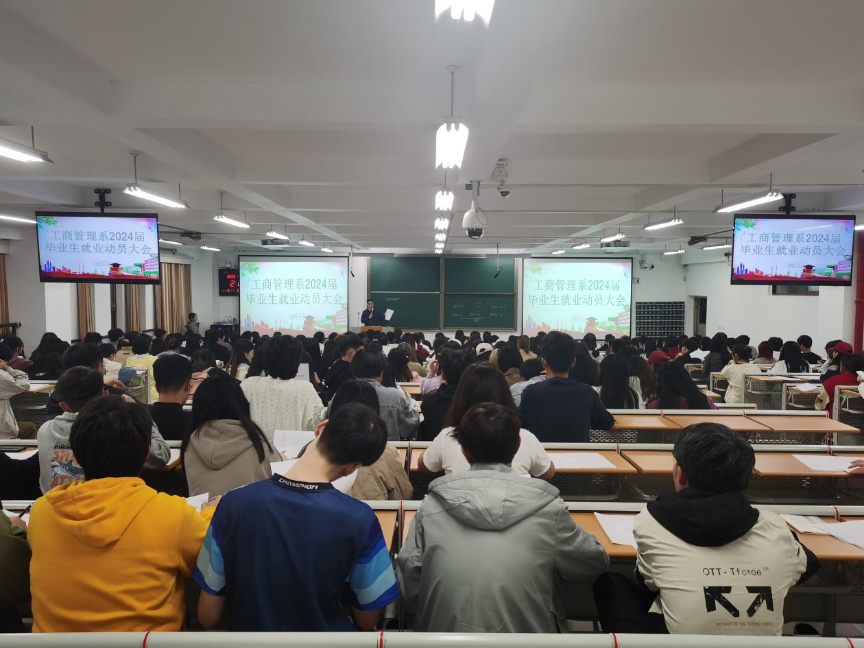 为激发工商管理系2024届毕业生的就业热情,增强学生的职业规划意识,11月1日,工商管理系在留芳楼413教室召开2024届毕业生就业动员大会,会议由工商管理系党总支副书记吴鹏西主持。