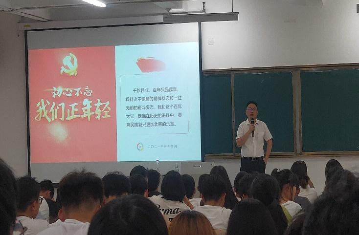 9月19日,工商管理系学生党支部副书记吴鹏西老师召开“入党启蒙教育”主题活动,活动内容分为两部分:一是讲述党的历史,阐述中国共产党为什么能,根源就在于中国共产党自身带有鲜明的优秀品质,成为激发中国人民在磨难中奋起,不断从胜利走向胜利的强大力量;二是介绍入党流程,鼓励广大青年团员树立崇高理想,积极向党组织靠拢。