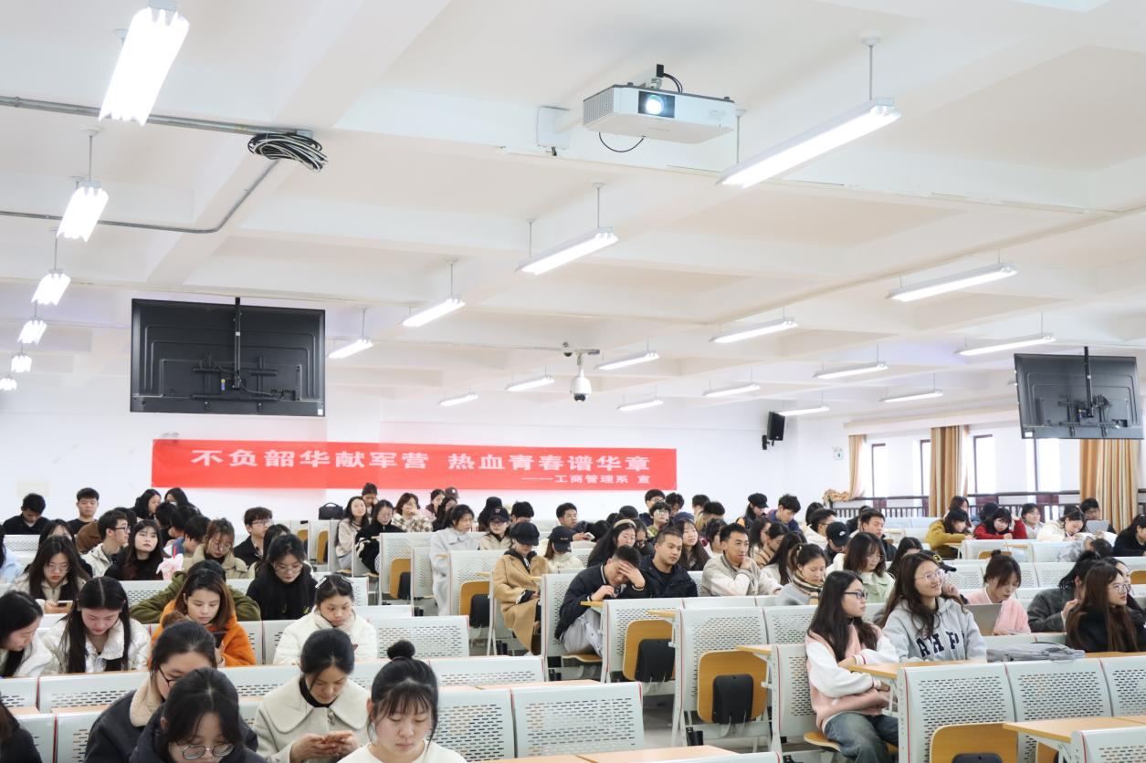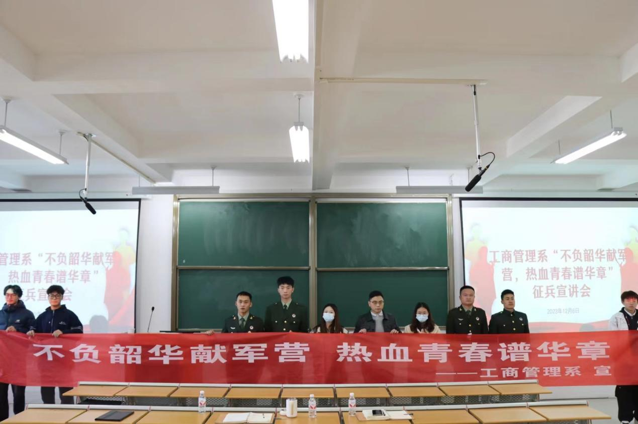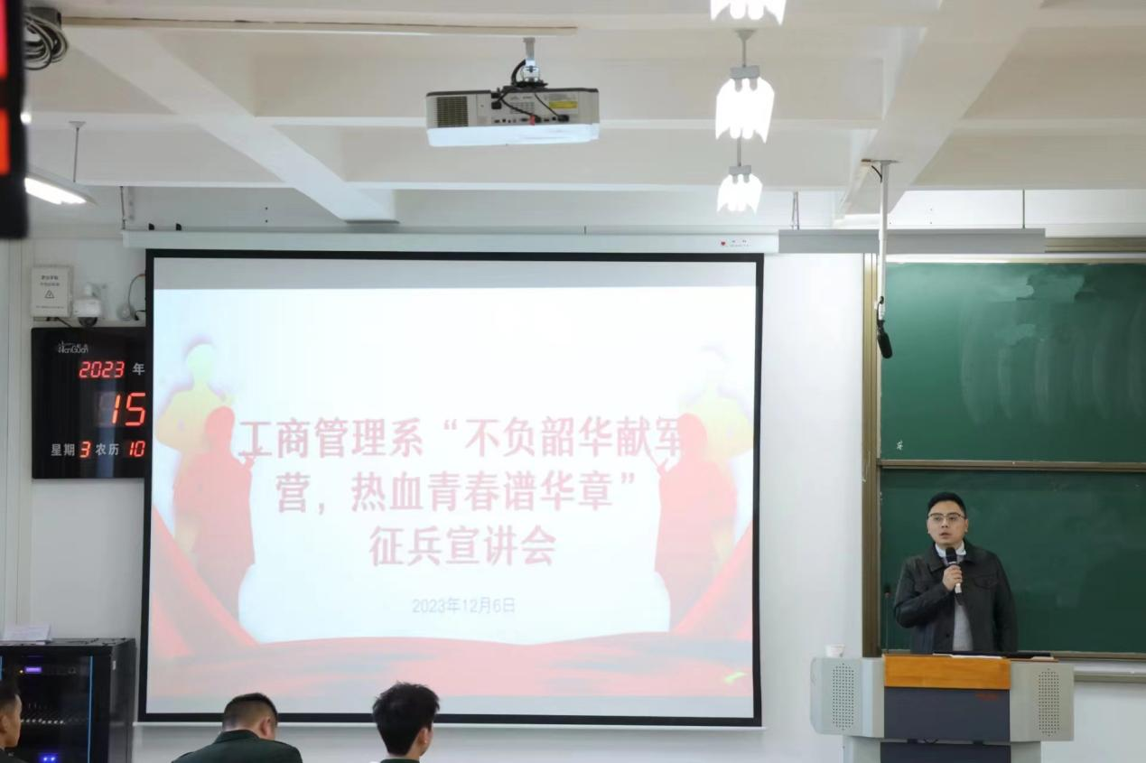 为响应国家征兵政策,为军队凝聚优秀人才,提高毕业生参军入伍的积极性,鼓励更多学生投身军营,在强军征程中成长成才,12月6日,工商管理系举办了“不负韶华献军营,热血青春谱华章”征兵宣讲会。工商管理系党支部副书记吴鹏西,工商管理系2020级辅导员周楚玉、周红素出席了本次活动。