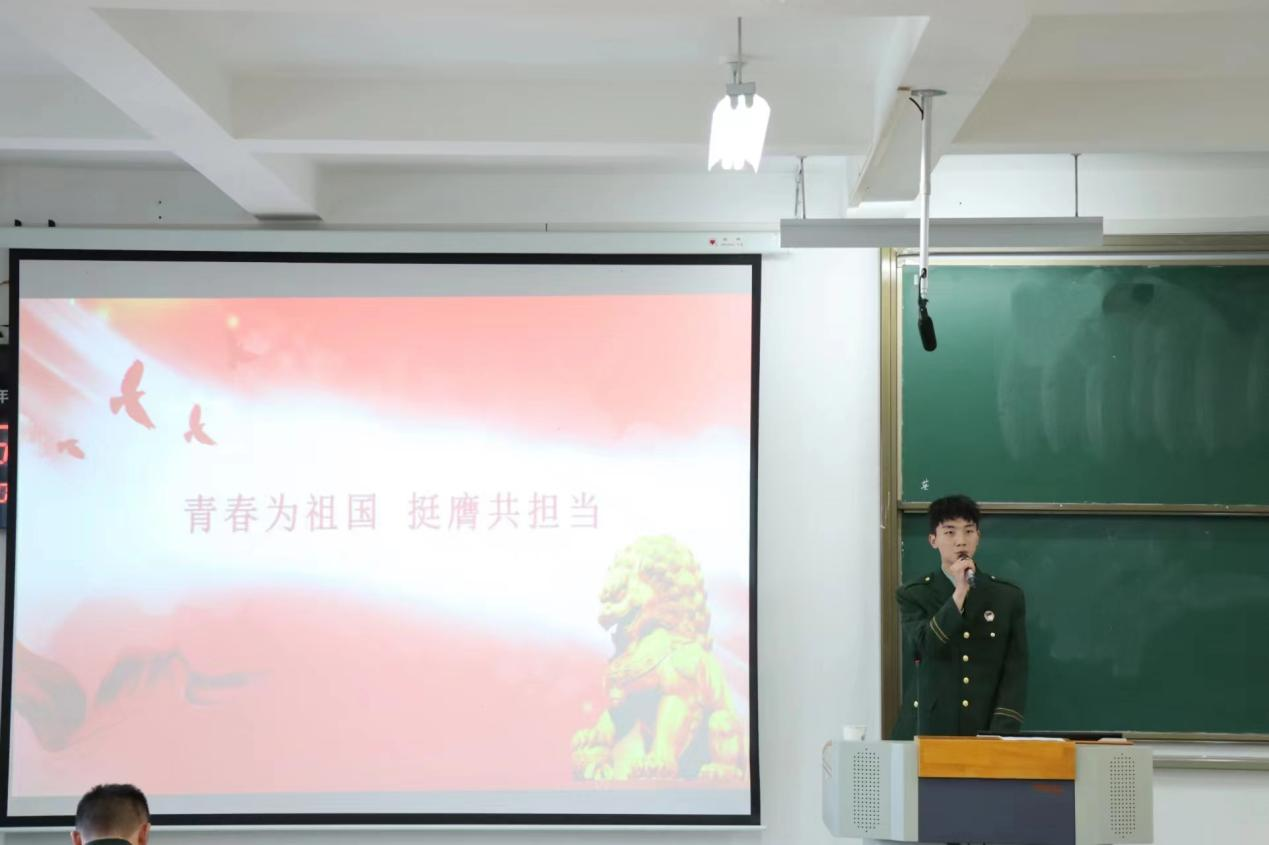 会后,党支部副书记吴鹏西为此次宣讲会作总结,他以历届学子的入伍案例为切入点,从报名条件、征兵流程、优抚待遇等方面进行了详细讲解,引导同学们深入认识大学生参军入伍对个人成长的帮助。随后,他进一步讲述了学校在读生尤其是毕业生参军所享受的优惠政策,他希望大家能牢固树立国家安全观念,筑牢国家安全的思想防线,积极响应国家号召,踊跃报名参兵入伍。
