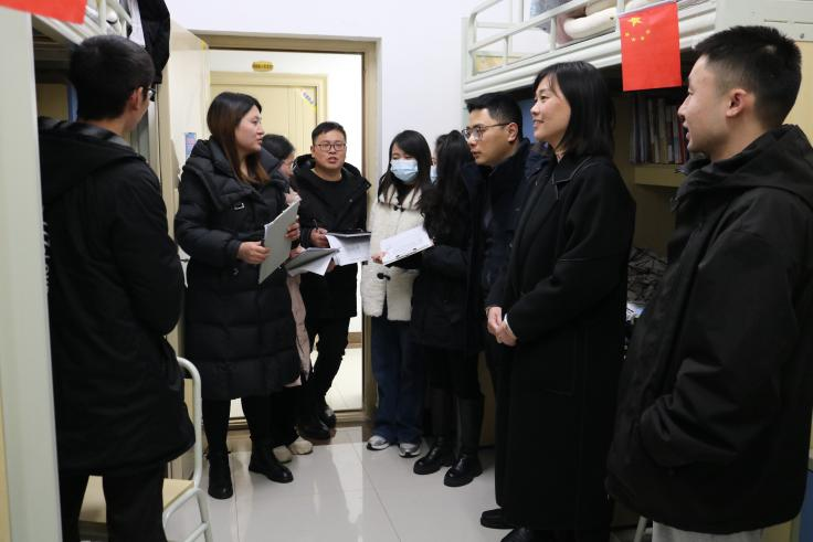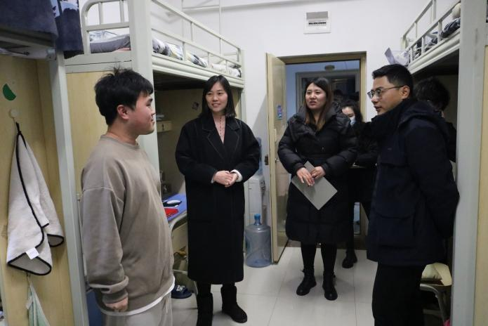 新学期开学伊始,为了解学生返校情况和思想动态,加强宿舍安全管理,营造良好的学习环境。2月25日晚,工商管理系党总支书记、主任童俊,党总支副书记吴鹏西及全体辅导员带领学生干部深入学生宿舍走访,开展新学期查寝工作。