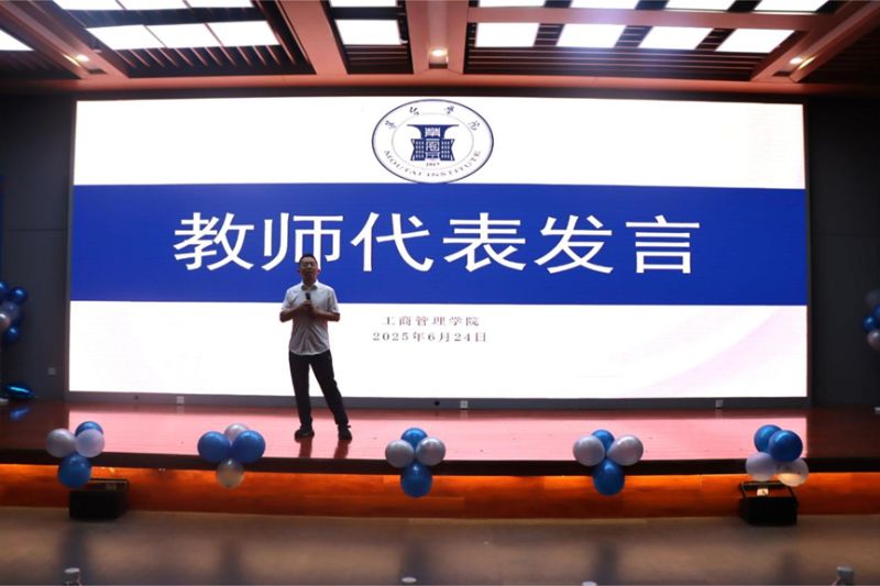 在欢送会的尾声,工商管理学院党总支书记、副院长吴新建老师讲话。他深情地表示,母校永远是毕业生们温暖的港湾,校园里的一草一木、一砖一瓦,都镌刻着大家共同的青春记忆。他满怀期待,希望未来能不断听闻同学们的捷报频传,也诚挚欢迎毕业生们常回母校看看。最后,衷心祝愿每一位毕业生能以梦想为指引,不负韶华,在人生新征程上乘风破浪,铸就属于自己的辉煌。