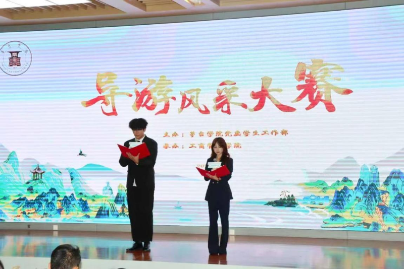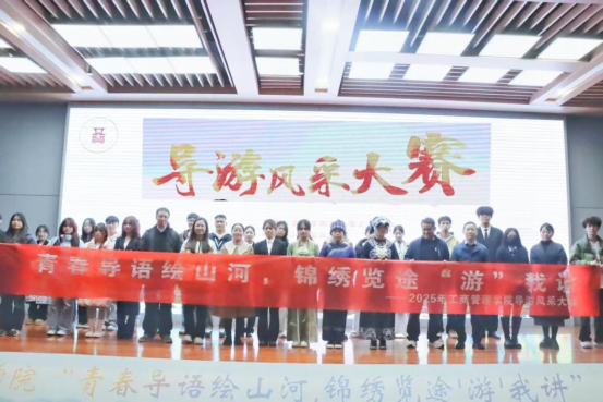 为提升学生职业素养,强化实践技能,激励学生加强知识学习和技能训练,提高演讲水平和综合素质,近日,工商管理学院在图书馆一楼报告厅成功举办导游风采大赛。本次大赛以“青春导语绘山河,锦绣览途‘游’我讲”为主题,吸引了全校各学院的学生积极参与。本次比赛由党委学生工作部李华老师,工商管理学院王能利老师、刘芷杙老师、徐兴花老师、熊亚老师、赵媛媛老师担任比赛评委。