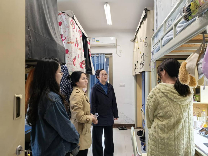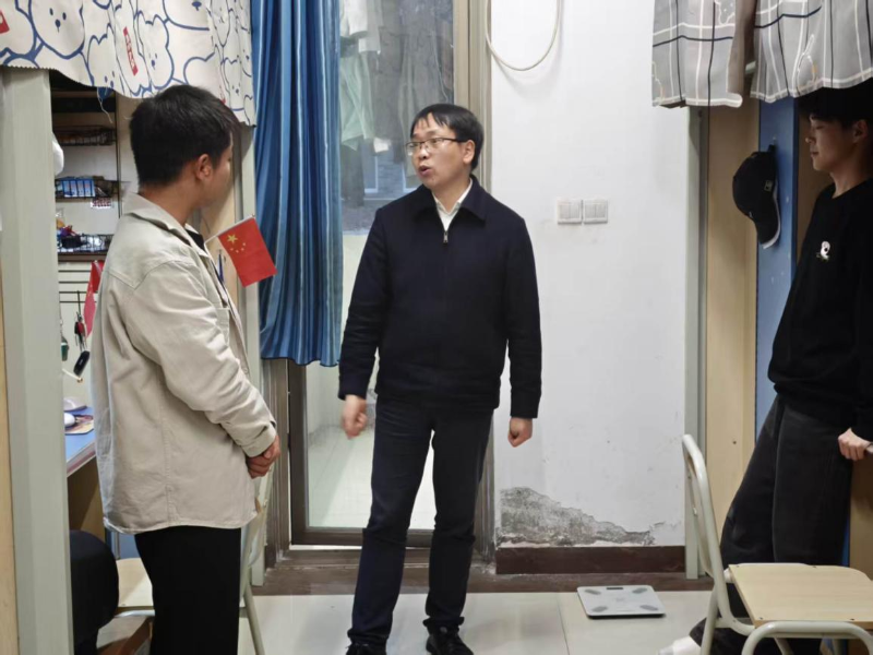 走访过程中,校领导与学生们亲切交流,关心学生假期去向,及时回应学生需求,强调宿舍安全规定,切实为同学们纾困解难。