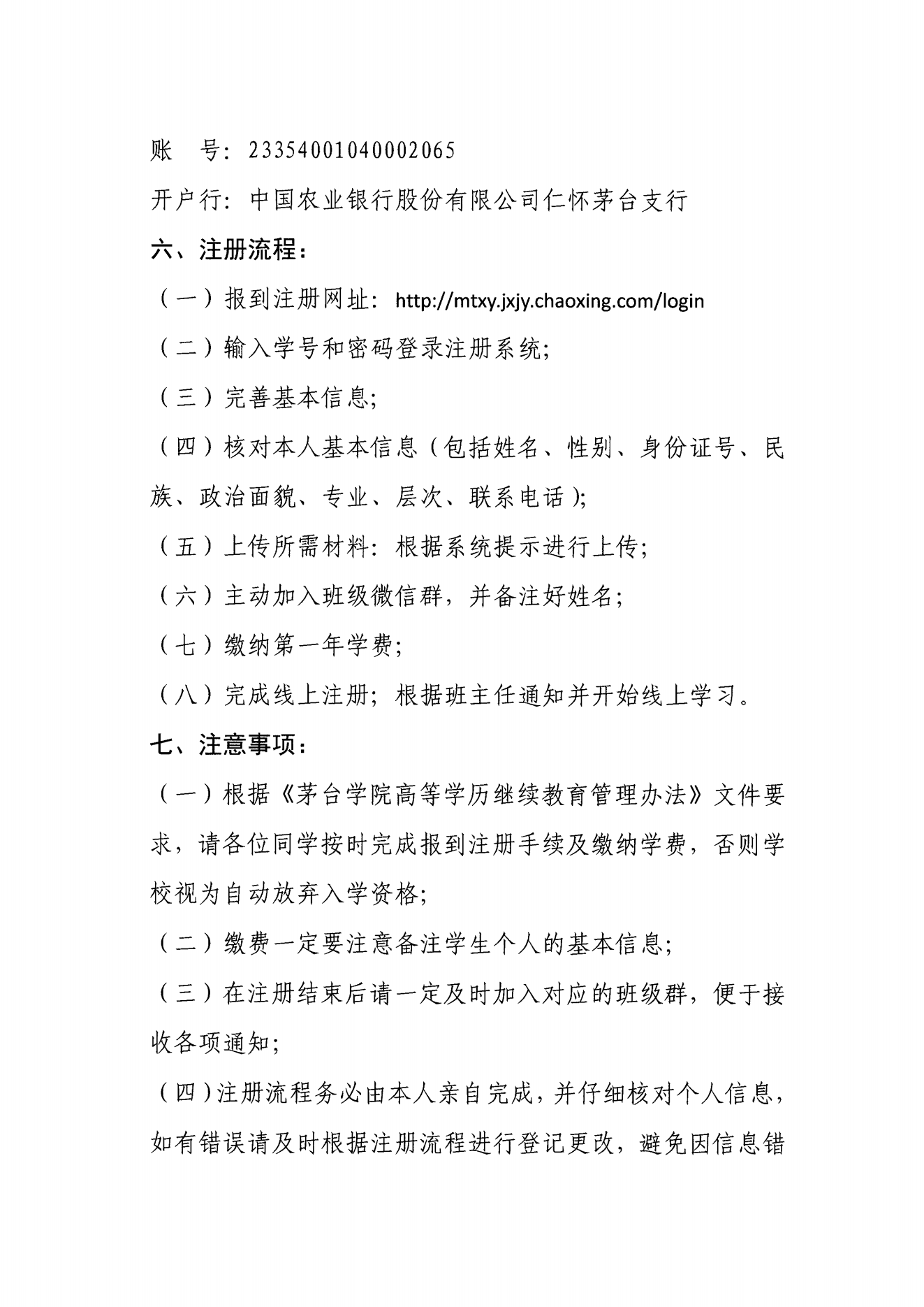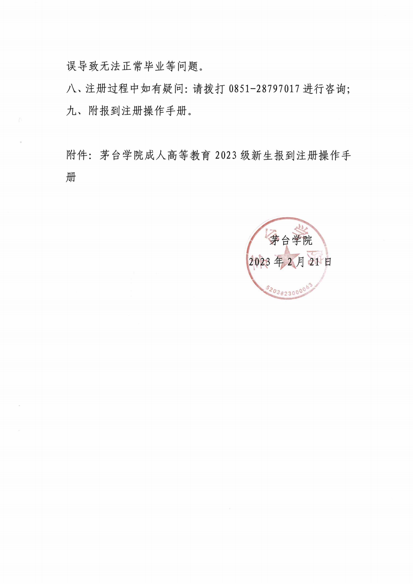 关于茅台学院成人高等学历教育2023级新生报到注册的通知