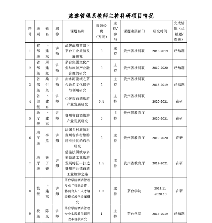 旅游管理系教师主持科研项目