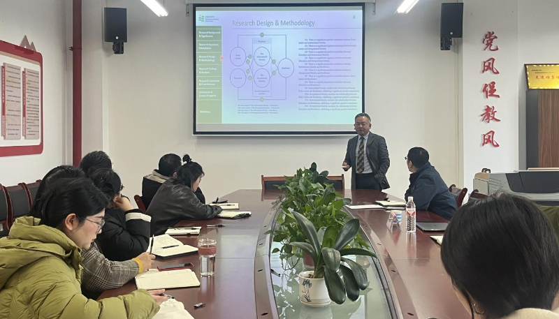 在讲座中,潘家佳博士紧紧围绕“双师型教师双职业身份认同量表的开发过程”这一主题,系统阐述了双师型教师双重专业身份的量表开发及其影响因素。他从研究背景、意义与问题出发,详细介绍了混合研究方法及实施过程,并对提出的多个假设进行了深入分析和验证。潘博士的研究不仅展现了学术前沿性,也为“双师型”教师队伍建设提供了理论支持。