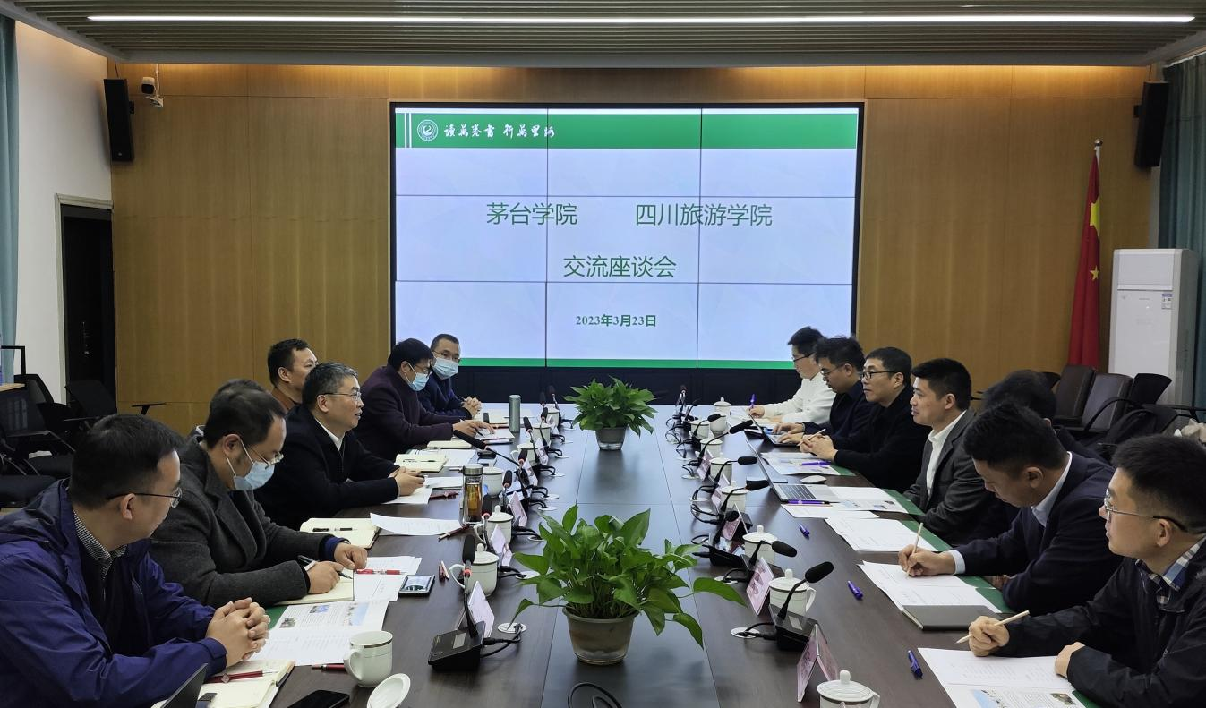 为学习和借鉴兄弟院校在旅游学科建设、迎评促建等工作中的宝贵经验和成功做法,3月23日上午,茅台学院党委委员、副校长田戊戌带队,科研处、学工部门和旅游管理系有关负责同志及人员一行来到四川旅游学院交流学习,受到四川旅游学院党委常委、副校长任迎伟及有关单位负责人热情接待。