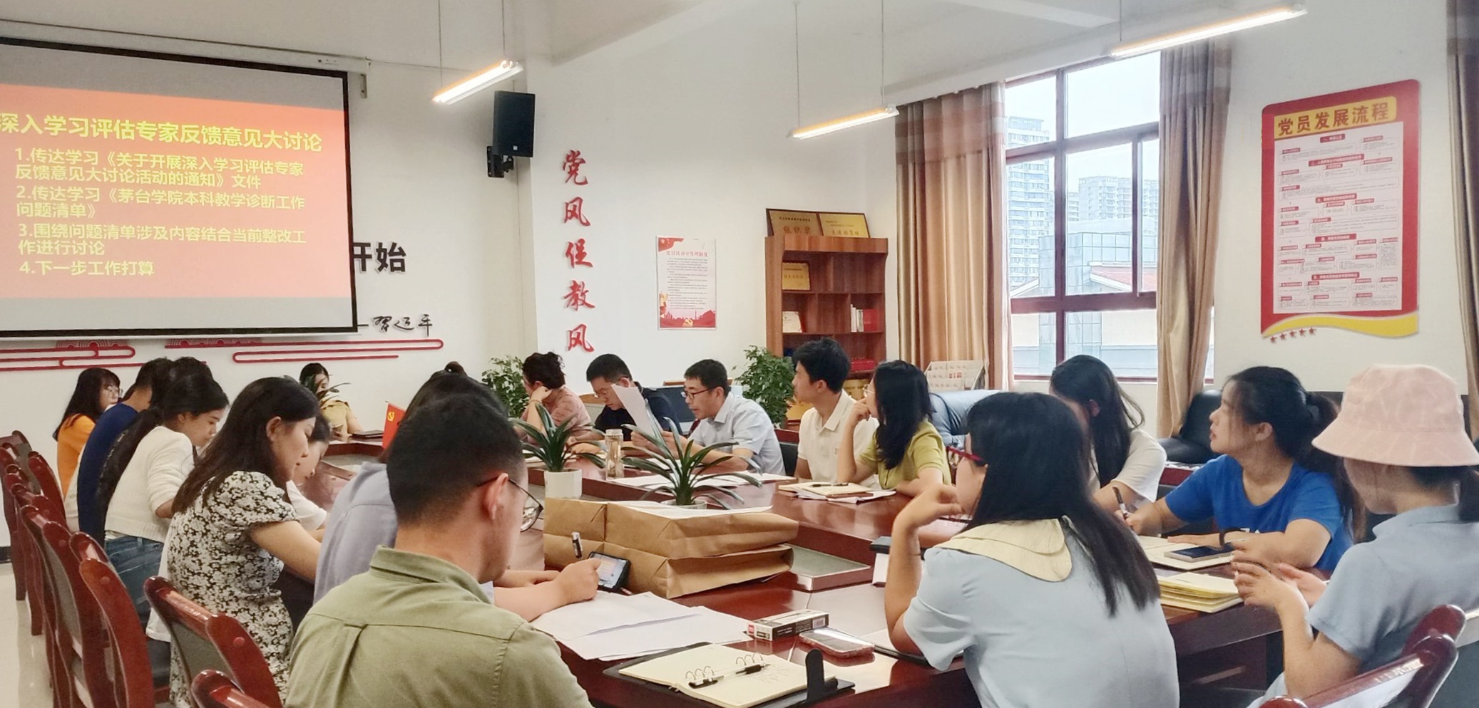 随后,系负责人卜建东原文传达了《关于开展深入学习评估专家反馈意见大讨论活动的通知》《茅台学院本科教学诊断工作问题清单》,并重点围绕涉及我系有关内容展开了大讨论。