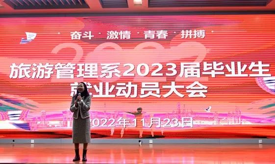 本次动员大会对2023届毕业生了解就业形势,明确就业方式方法,树立正确就业观、端正就业态度等具有重要意义。今后,旅游管理系将继续加强对毕业生实习和就业的指导工作,为毕业生提供形式多样的就业咨询和后勤保障服务。