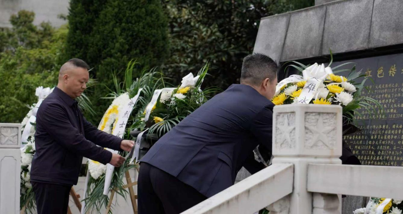 活动伊始,师生代表向烈士纪念碑敬献花篮,仁怀市退役军人事务局副局长熊鑫与茅台学院党委副书记、副董事长、工会主席李贤富整理缎带。全体人员肃立默哀,在庄严肃穆的氛围中缅怀革命先烈。随后,师生们有序瞻仰烈士墓、敬献鲜花,在追思中感悟先辈们的初心使命,筑牢理想信念根基。