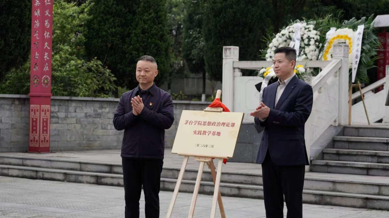 在校地共建环节,仁怀市退役军人事务局副局长熊鑫与茅台学院党委副书记、副董事长、工会主席李贤富共同为“茅台学院马克思主义学院思政课实践教学基地”揭牌,标志着双方在校地协同育人、实践育人工作领域开创了新局面,为高校思政课实践教学搭建了新平台,实现了红色资源与高校育人的深度联动。