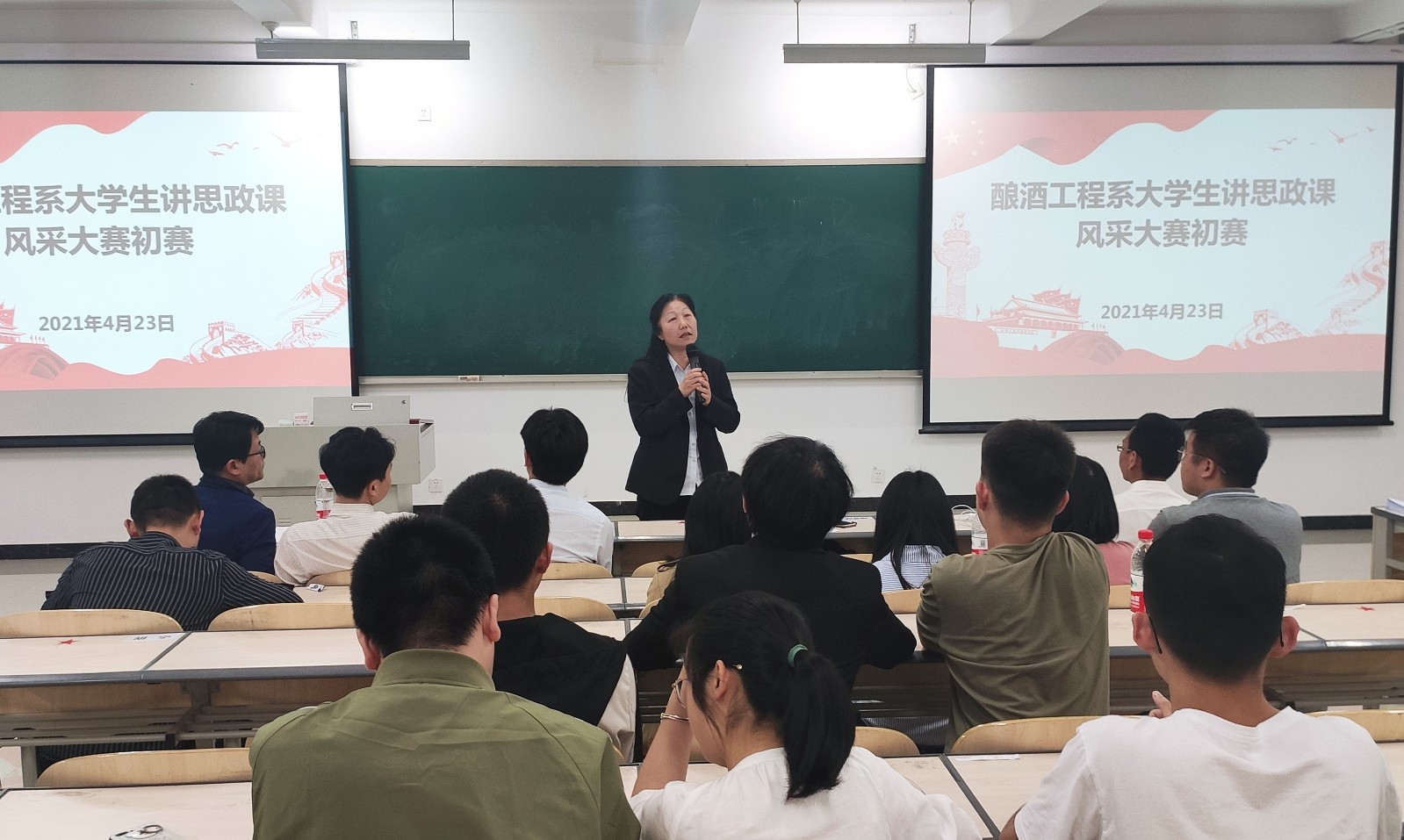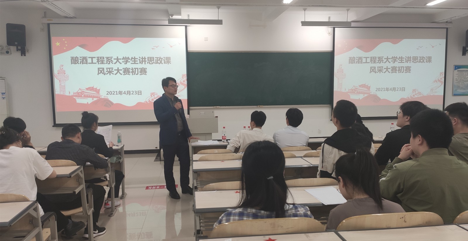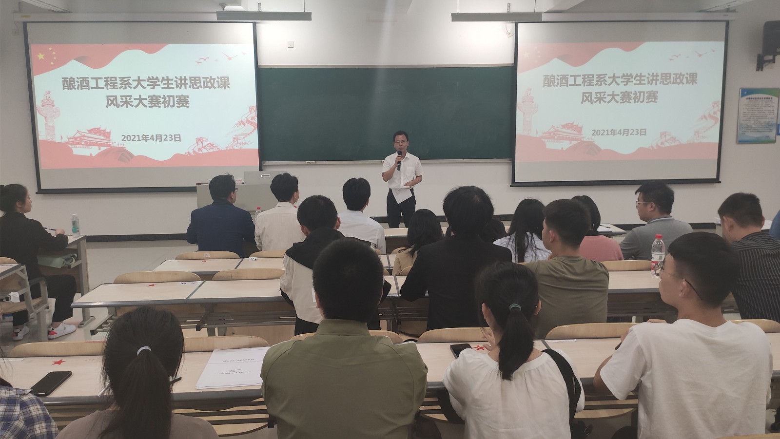 为热烈庆祝中国共产党成立100周年,全面推动习近平新时代中国特色社会主义思想“三进”工作,展现新时代大学生马克思主义理论素养和精神风貌。4月23日晚,酿酒工程系以“共话党的辉煌史、筑梦青春向未来”为主题,组织开展了大学生讲思政课风采大赛初赛,我校部分思政课教师、系党政班子和辅导员担任比赛评委,全体参赛队成员和学生代表到场观看。