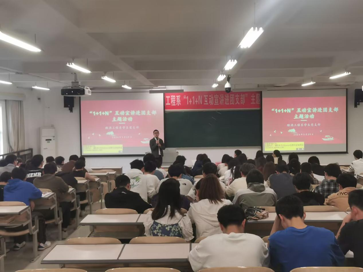 2024年3月29日,为深入学习贯彻习近平新时代中国特色社会主义思想,进一步引导广大团员青年深刻领会党的二十大精神,坚定理想信念,增强责任意识,厚植爱国情怀酿酒工程系党总支、马克思主义学院党支部联合开展第三期“1+1+N”互动宣讲进团支部主题活动,会议由酿酒工程系罗粒老师主持,邀请到了马克思主义学院党支部副书记程奥林老师、酿酒工程系党员代表张峻霖同学作为分享嘉宾,酿酒工程系全体辅导员、2022级全体同学参加。