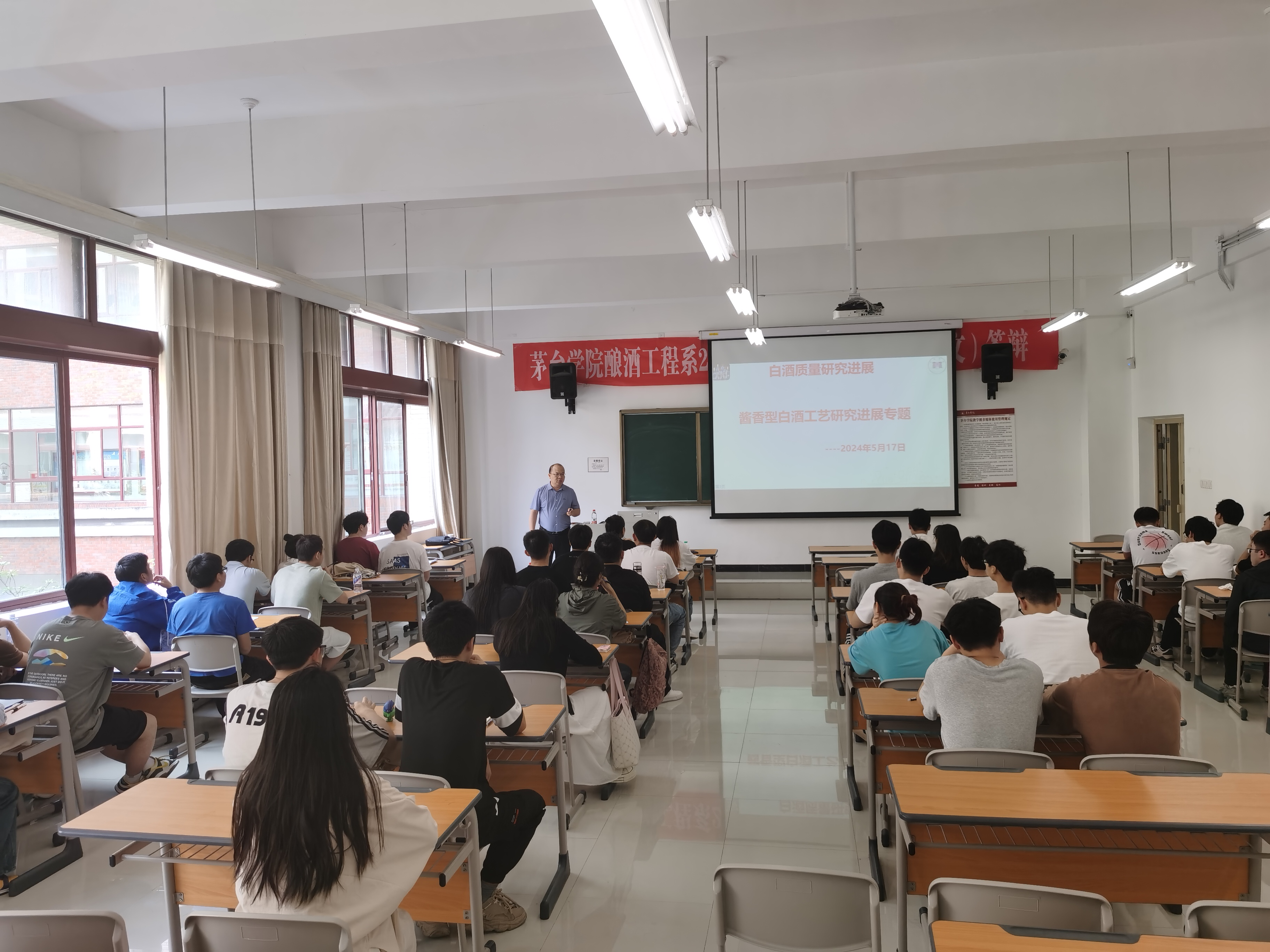 2024年5月17日,贵州茅台股份有限公司制曲六车间主任范成伍到我校为我系学生授课,讲授关于“酱香白酒工艺研究进展”的相关内容。范成伍主任重点围绕近些年酱香型白酒工艺取得的突破和研究进展等内容展开本次授课。在授课的过程中,范成伍主任结合自身丰富的工作经验,将课堂理论与实际生产紧密结合,让枯燥的理论知识变得生动,加深学生们印象,让学生更好掌握知识。此外,范成伍主任以自己切身经历,劝诫学生要珍惜当下学习时光,提升自我知识储备,为毕业后进入工作岗位打下坚实的基础。